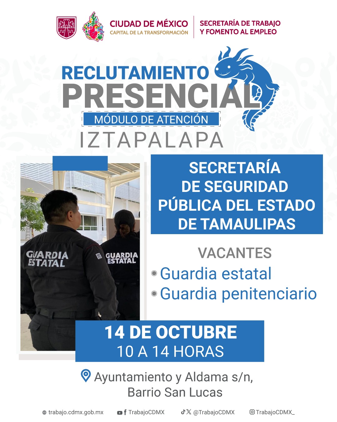Participa en el reclutamiento presencial en el Módulo de Atención de la alcaldía Iztapalapa, ubicado en calle Ayuntamiento y Aldama s/n, Barrio San Lucas (a 1 cuadra del Metro Iztapalapa)