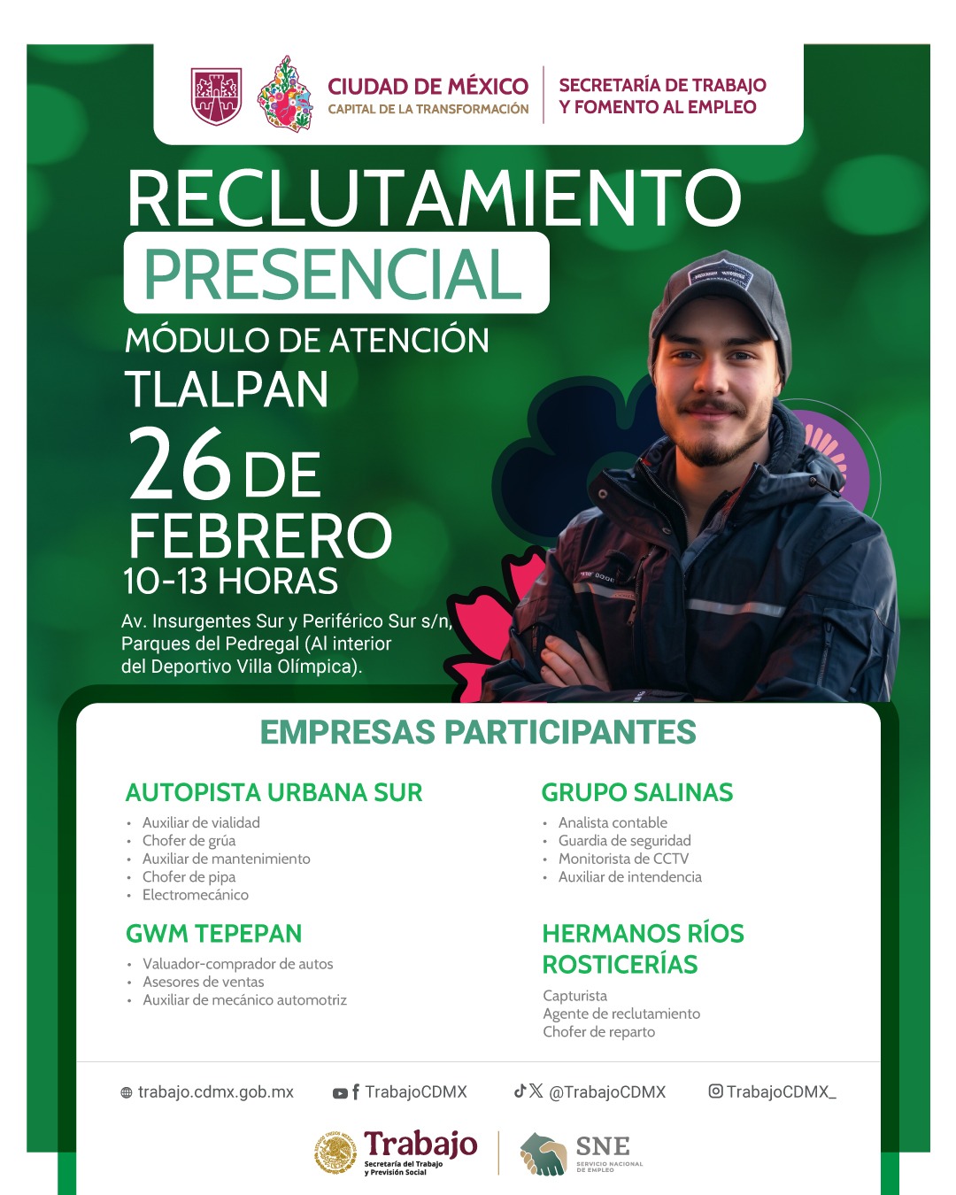Participa en el reclutamiento presencial en Av. Insurgentes Sur y Periférico Sur s/n, Parques del Pedregal (al interior del Deportivo Villa Olímpica)