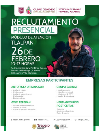 La Secretaría de Trabajo y Fomento al Empleo realiza reclutamientos presenciales como parte de...