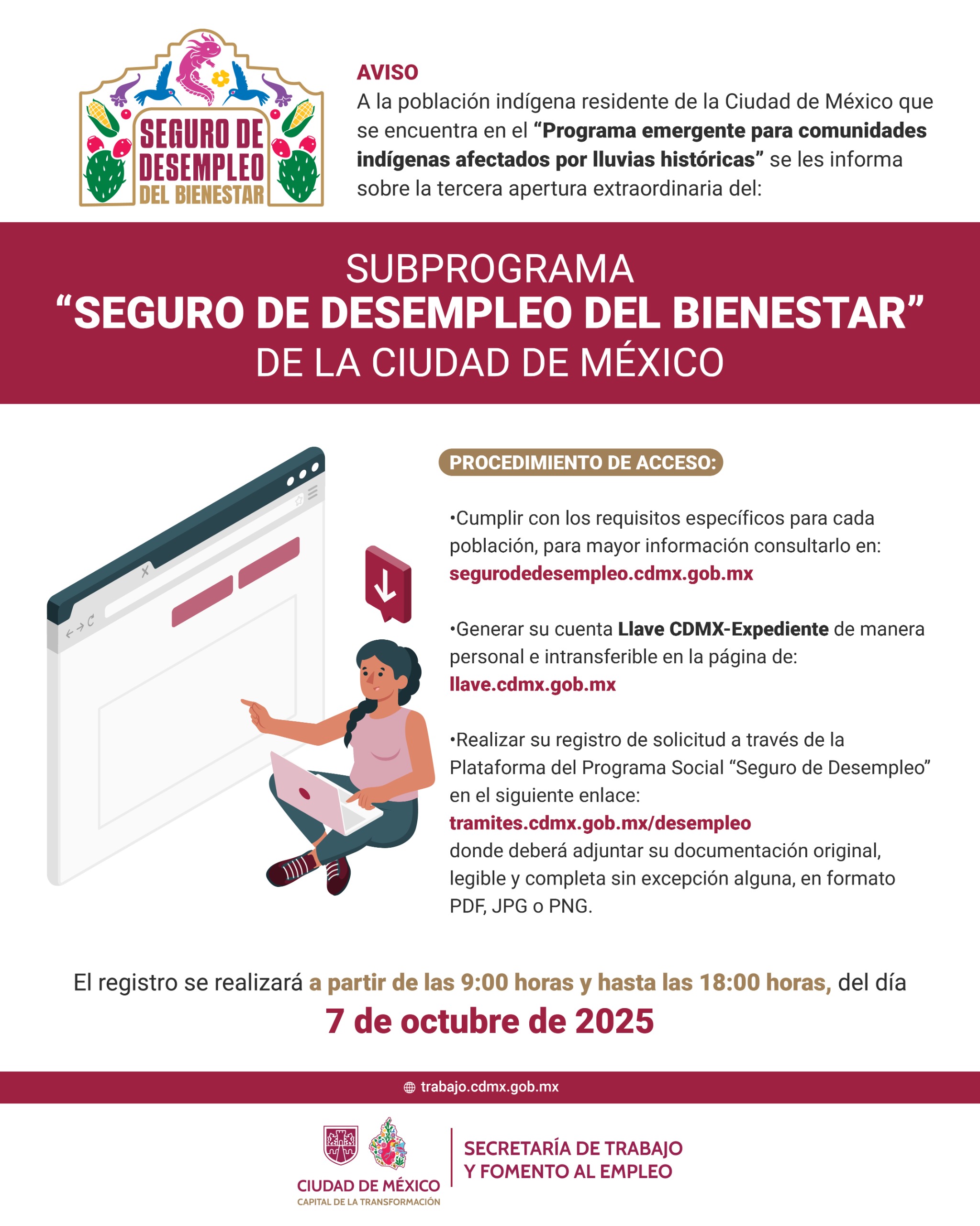 Tercera Convocatoria Extraordinaria Seguro de Desempleo del Bienestar (7 de octubre 2025)
